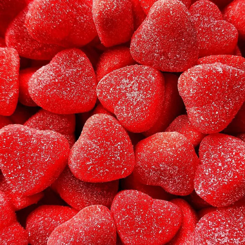 Herzförmige Geleebonbons mit süß-fruchtigem Schmelzkern, weich und bunt, für einen köstlichen Leckerbissen zum Teilen.