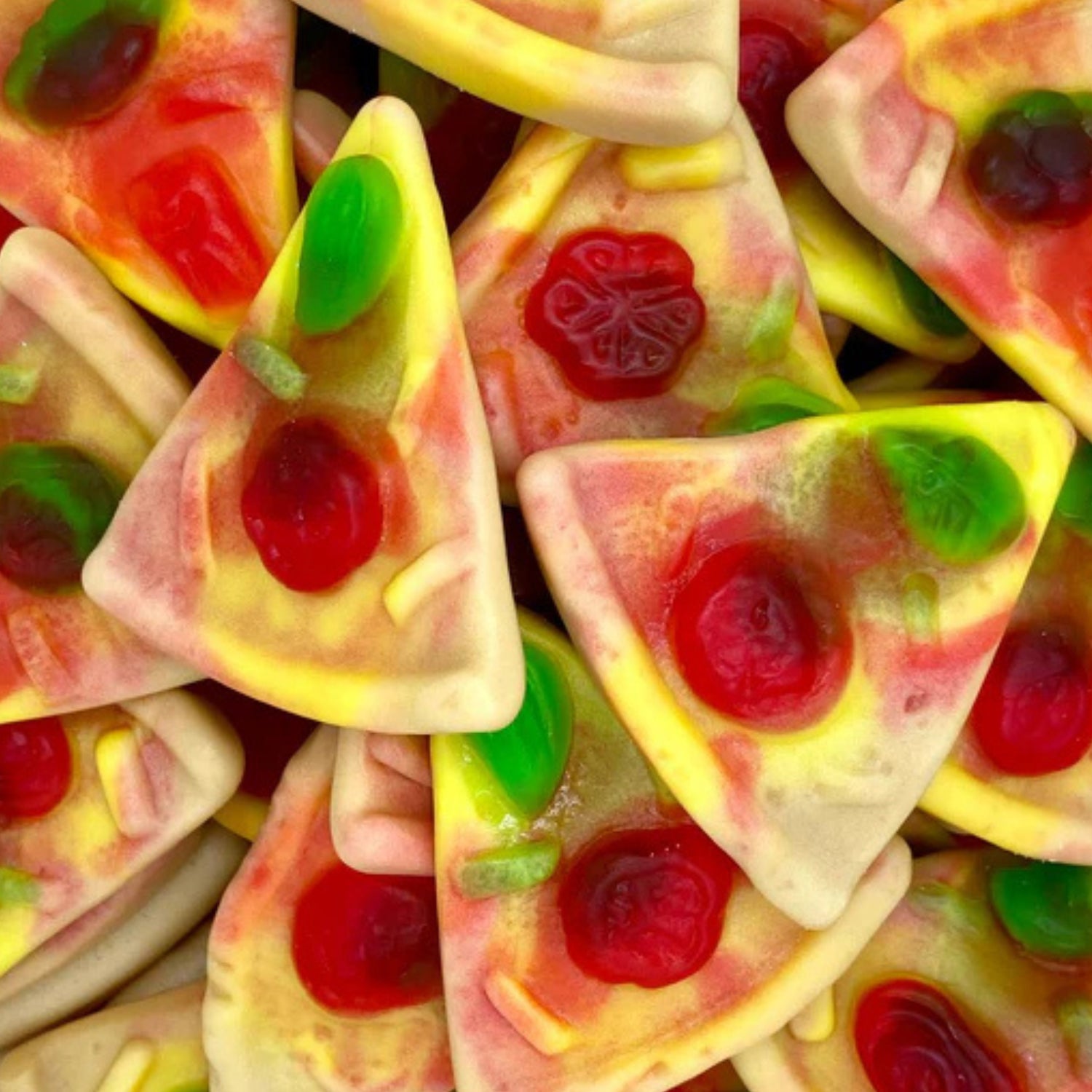 Gummibärchen in Pizzastückform mit fruchtig-süßem Geschmack für einen köstlichen und originellen Leckerbissen zum Teilen.