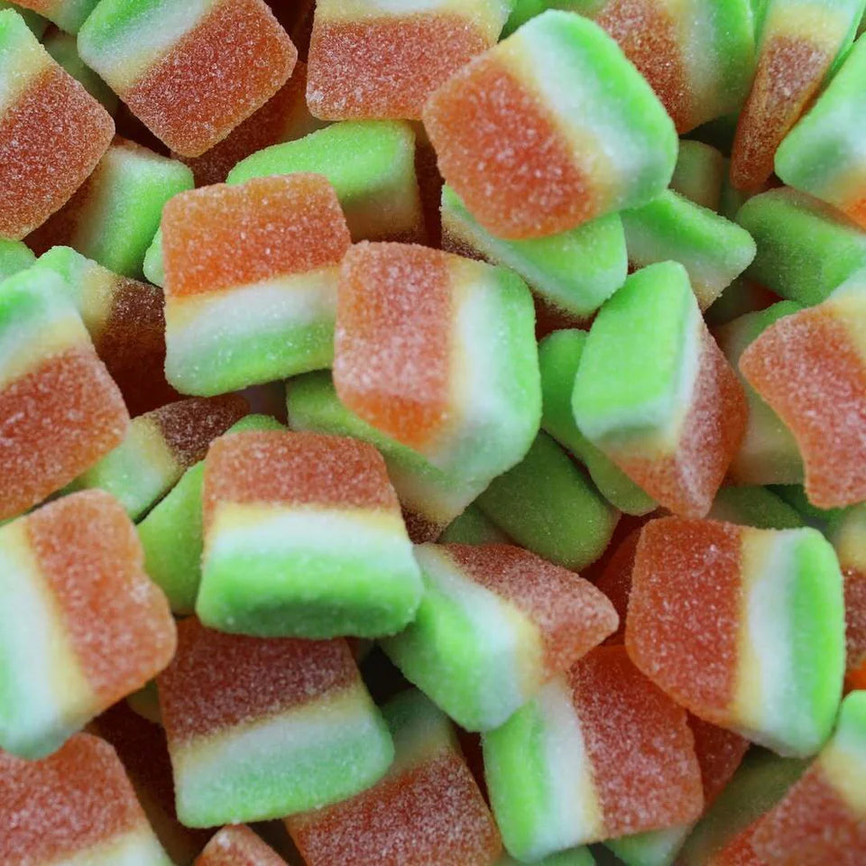 Des bonbons gélifiés en forme de tranches de mangue, au goût fruité et sucré, moelleux et colorés, pour un plaisir gourmand exotique à tout moment.